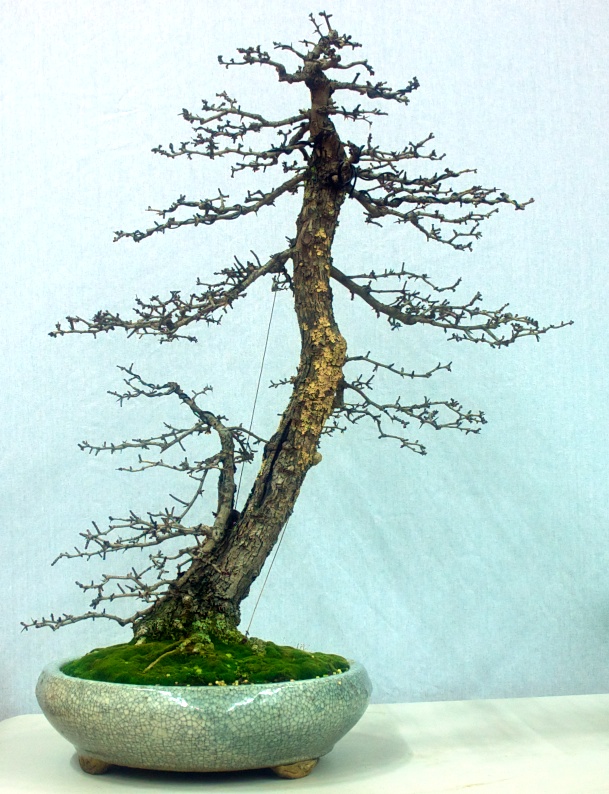 The Hemlock is a very old tree that was grown as a directionless flat multi trunk cascade. Four years ago it was reduced to one cascade trunk. Most of the dead wood was caused by sun scorch so during the summer months it is now kept under shade cloth.